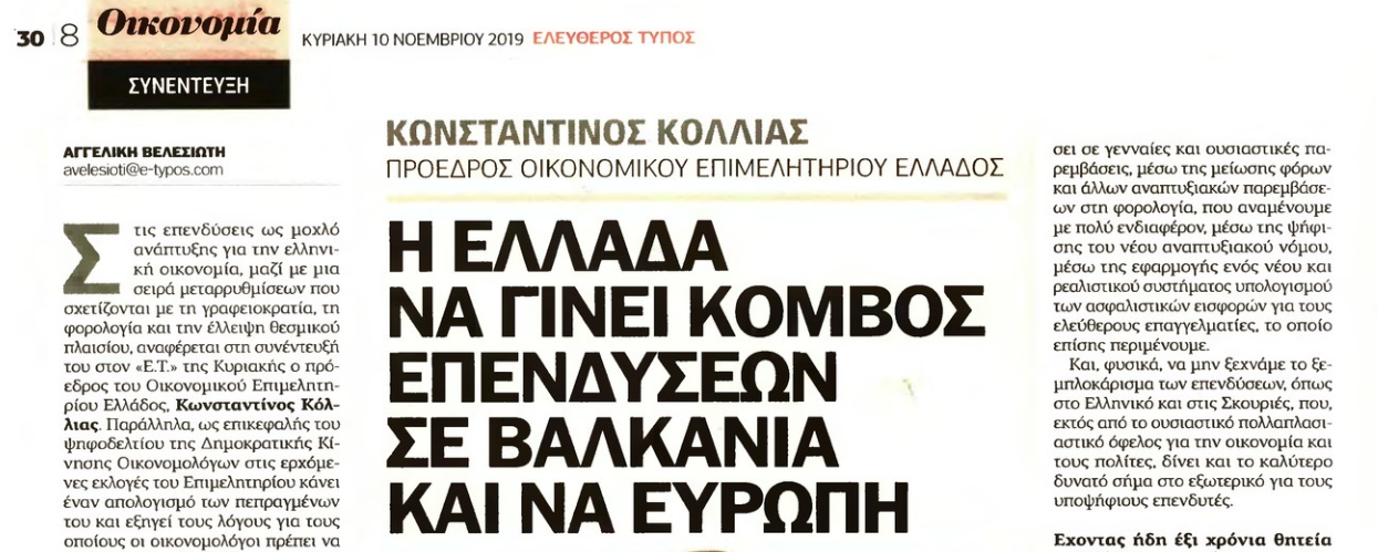 Κ. Κόλλιας: Η Ελλάδα να γίνει κόμβος επενδύσεων σε Βαλκάνια και ΝΑ Ευρώπη